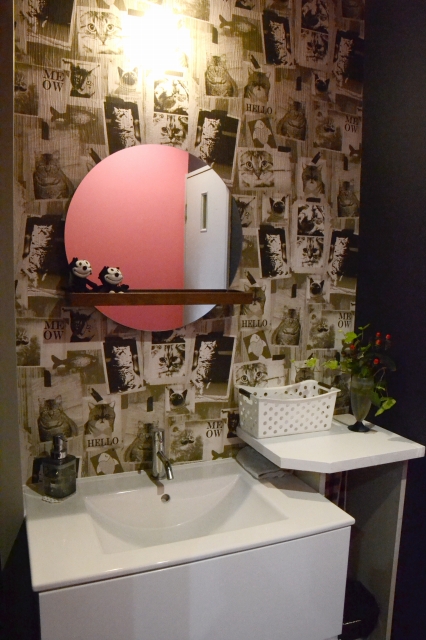 不要になったクローゼットの扉も色見をさわやかなブルーに変更し、ベンチの足あてとカウンター席の壁面装飾に変身。