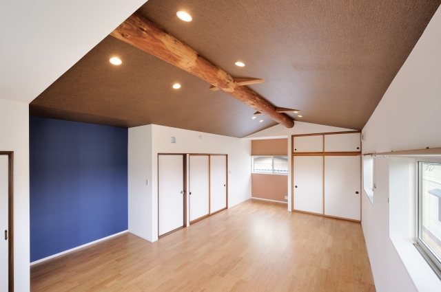 天井裏に隠れていた美しい丸太梁も表しにして大変身!
