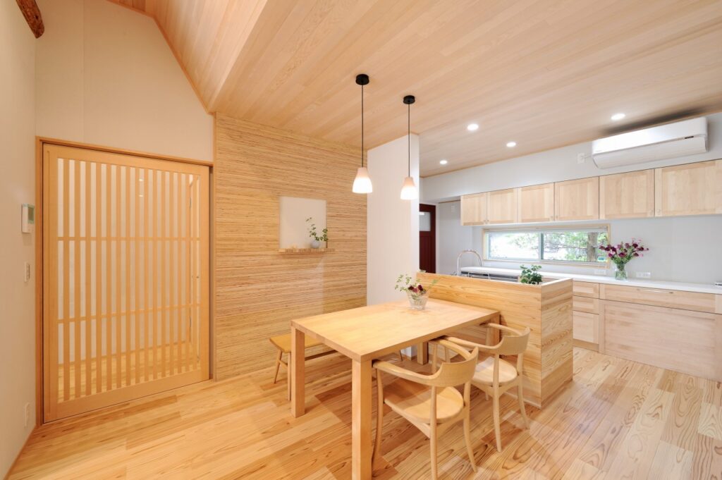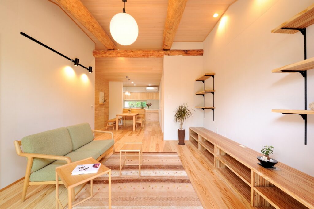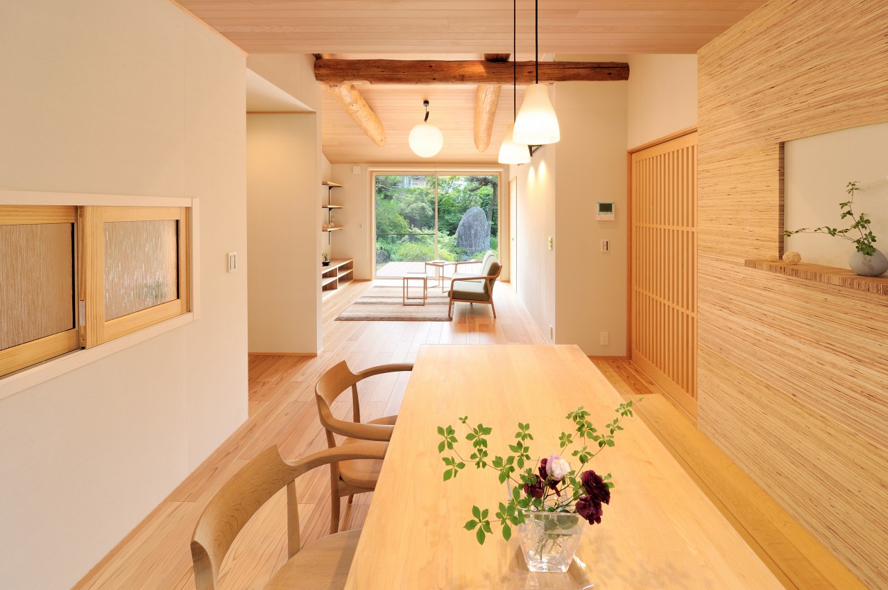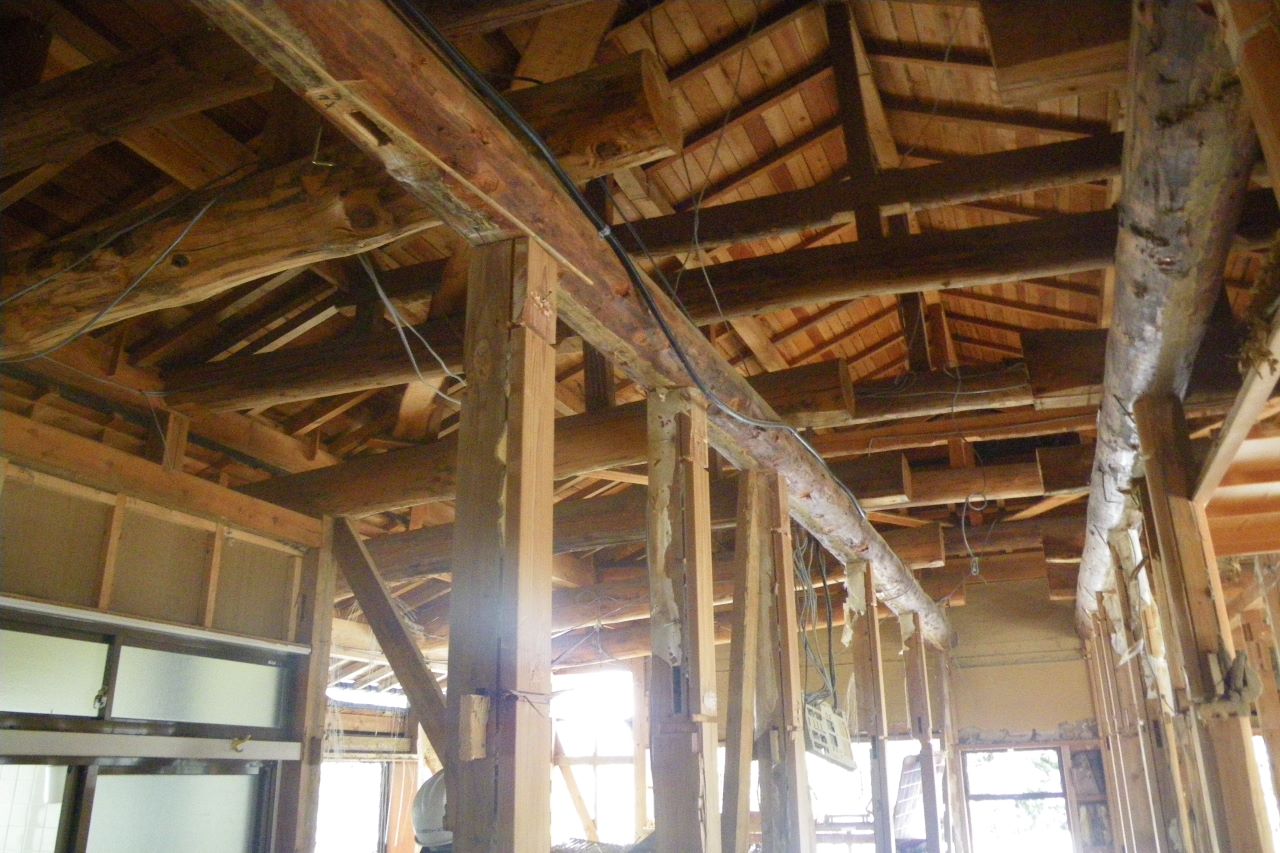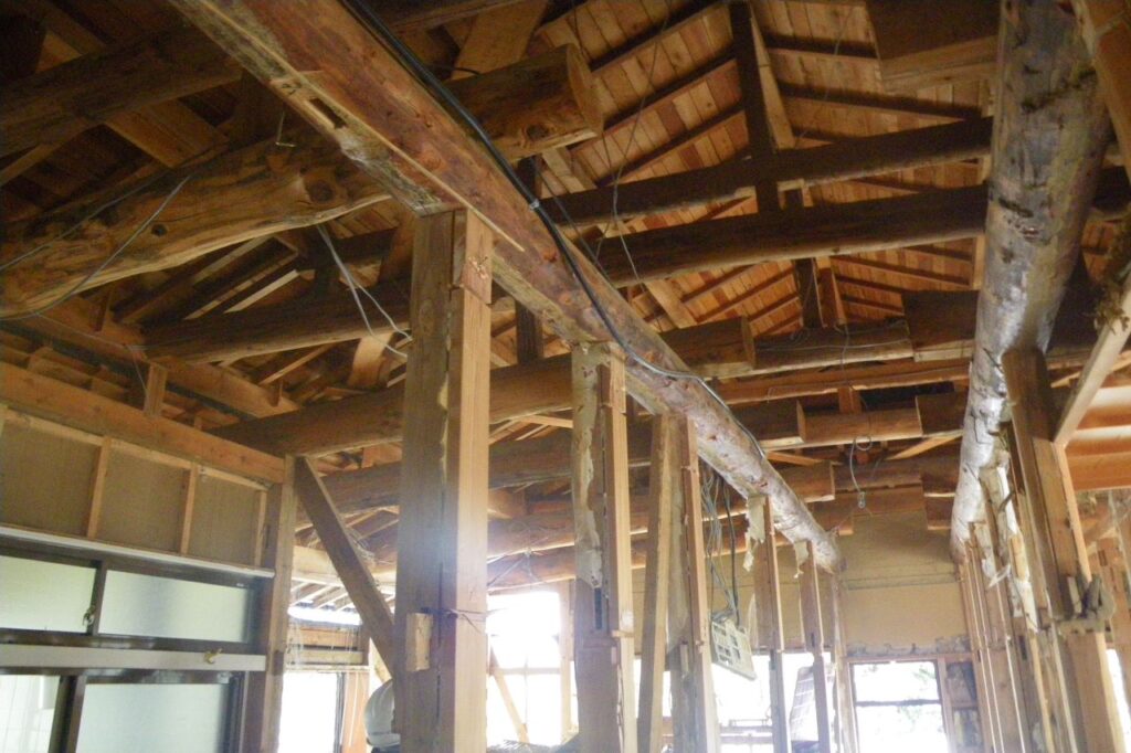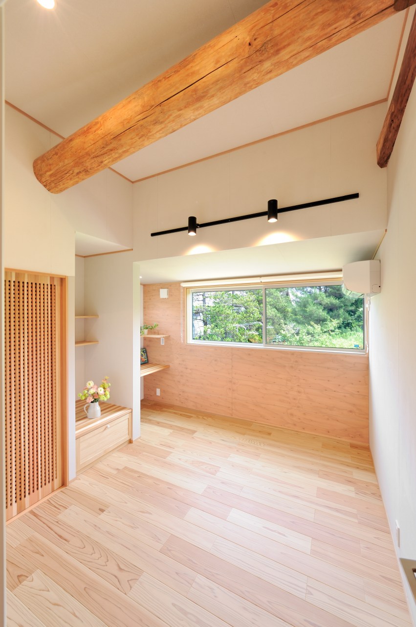 30年間小屋裏で眠り続けた大きな丸太梁を露出させ、丁寧に丹念に磨き上げた。