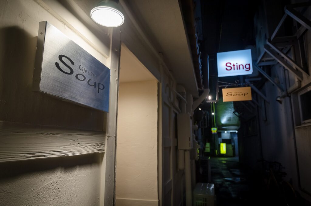 新潟市中央区古町5番町ある小さなショットバー、Cafe&Bar Soup(スープ)様。